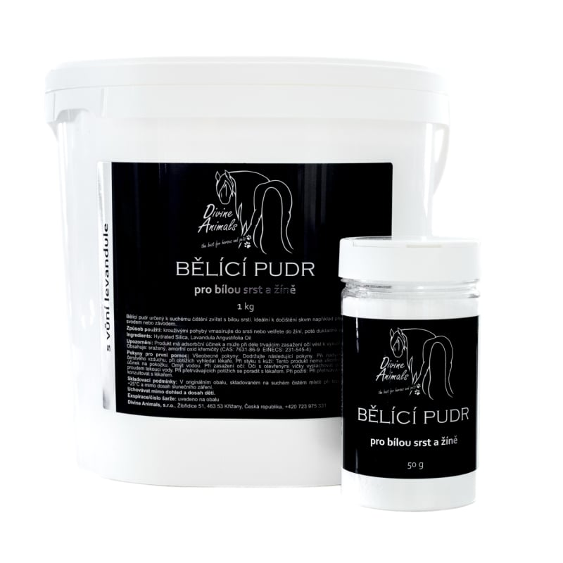 Bělící pudr určený k suchému čištění zvířat s bílou srstí. Ideální k dočištění skvrn například před výstavou, svodem nebo závodem.