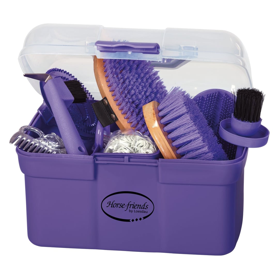 Dětský box včetně čištění, Rozměry: 31 × 20 × 20 cm. Materiál: plast. Obsahuje: posuvnou poličku, kartáč, hřbílko, hřeben, houbu, stěrku na vodu a háček na kopyta