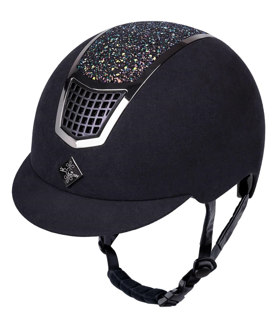 Moderní, luxusní, zdobená jezdecká přilba od firmy Fair Play.