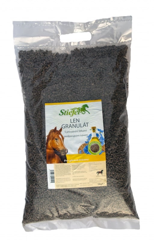 Stiefel Len – granulát je lněné semínko již připravené ke zkrmování bez nutnosti další úpravy. Takto upravené lněné semeno je dobře poživatelné i stravitelné, koním chutná. Díky vysokému obsahu hlenotvorných látek se můžou Stiefel lněné produkty pozitivně projevit na celkovém zažívání koní. Navíc obsahuje podpůrné látky pro výměnu srsti.
