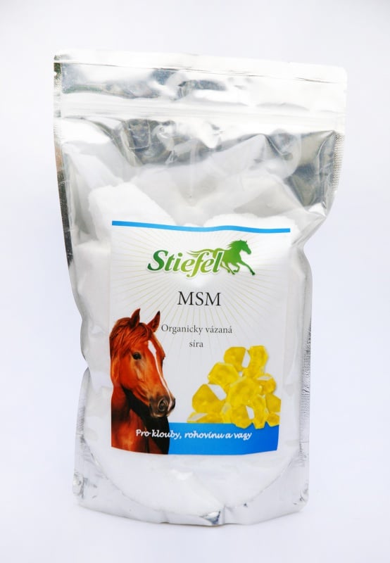 Obsahuje 99,99% ultra čistého methylsulfonylmethenu (MSM). MSM je biologickým zdrojem organicky vázané a tím metabolicky lehce dostupné síry, nezbytné k syntéze kolagenu. Ta může podpořit obnovení a zachování správné funkce kloubů, chrupavek a kůže. Tento přírodní antioxidant může i tišit bolest a otoky způsobené artrotickými změnami v kloubech. Velmi dobře může působit také při hojení poškozené pokožky a podporovat růst nové srsti. Zejména u koní postižených letní vyrážkou je doporučován k zařazení do krmné dávky. Také u koní s problematickou rohovinou kopyt lze MSM doporučit.