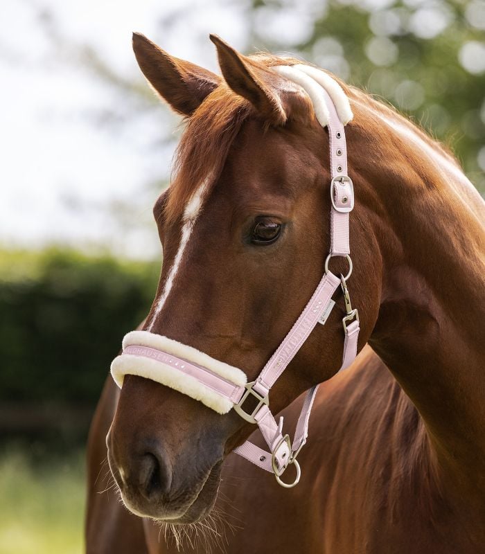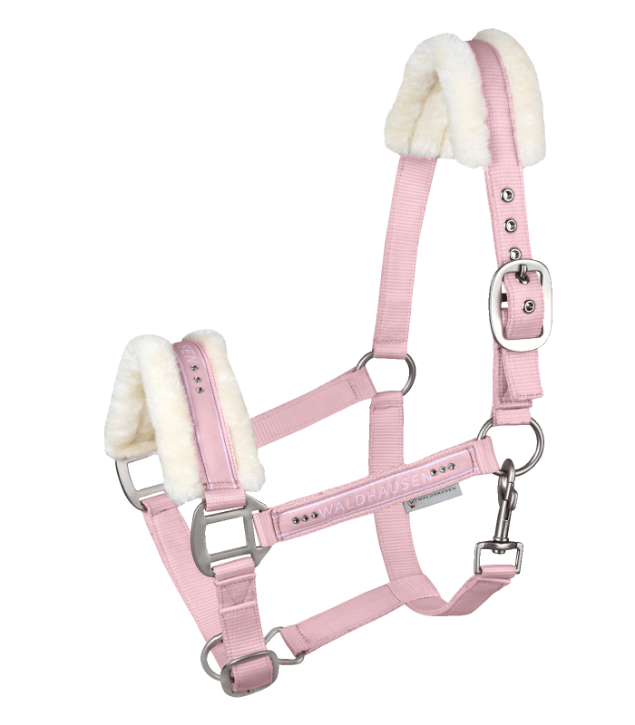 Nadýchaná ohlávka s módním páskem Waldhausen a matným kováním. Vrcholem jsou další kamínky na nosním pásku a lícnicích. Měkké polstrování ze syntetické kožešiny na čelence a nosním pásku. Vícenásobné nastavení na řemínku pod bradou a náhlavní části Více informací...