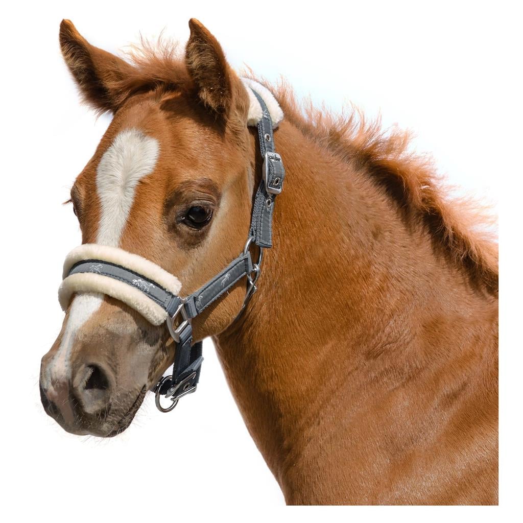 Ohlávka hříběcí s koníky a kožíškem šedá