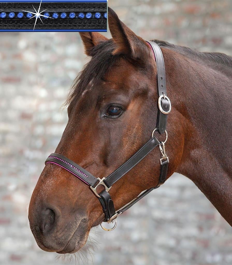 Krásná, kvalitní, kožená ohlávka s kamínky vhodná na předváděcí akce.