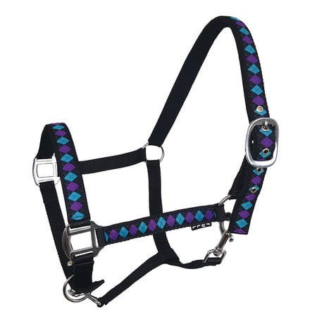 Kvalitní, podložená ohlávka v oblíbeném káro stylu, nastavitelná za ušima.