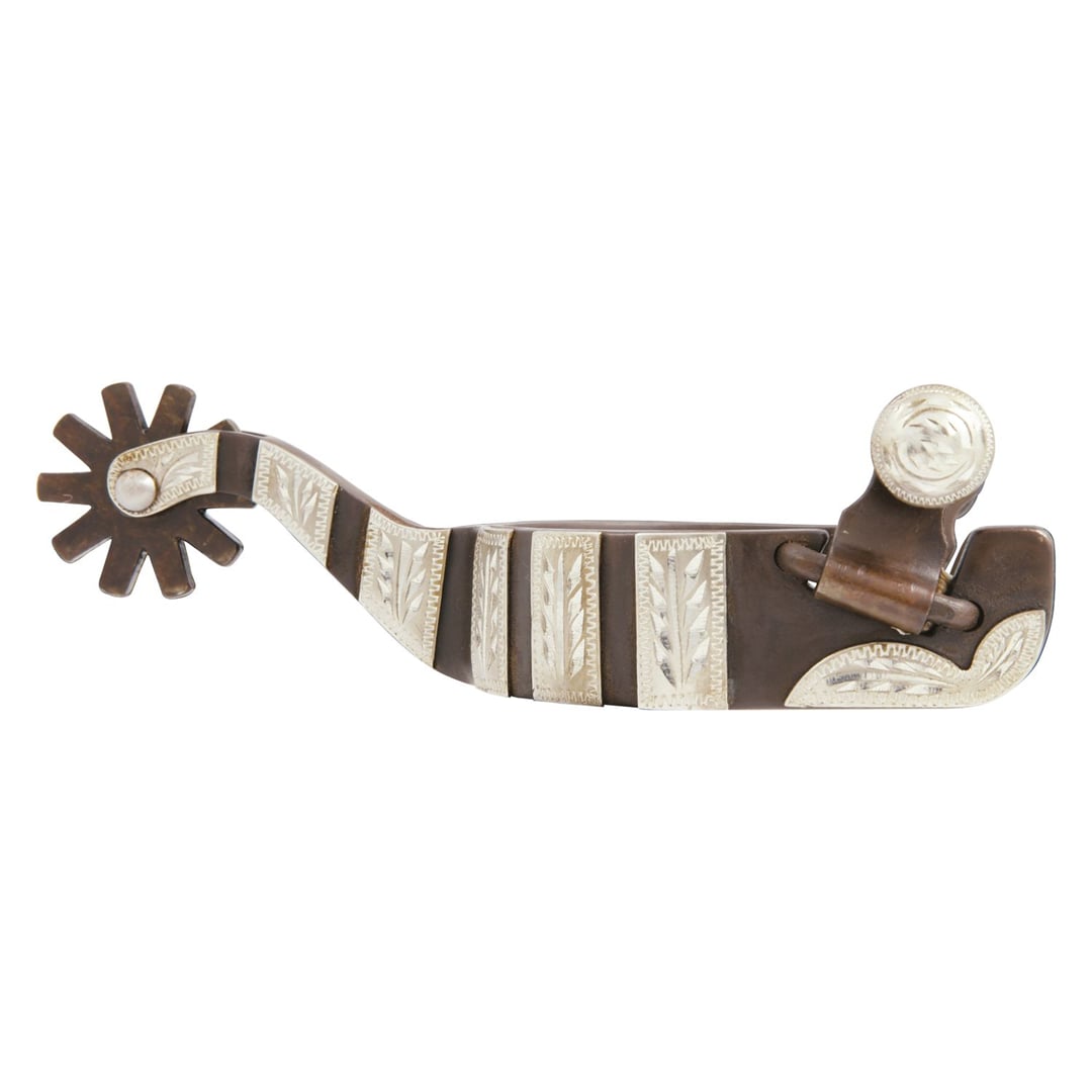 Tyto westernové ostruhy jsou z hnědého železa s kolečkem a s kovovými doplňky s krásným rytím.