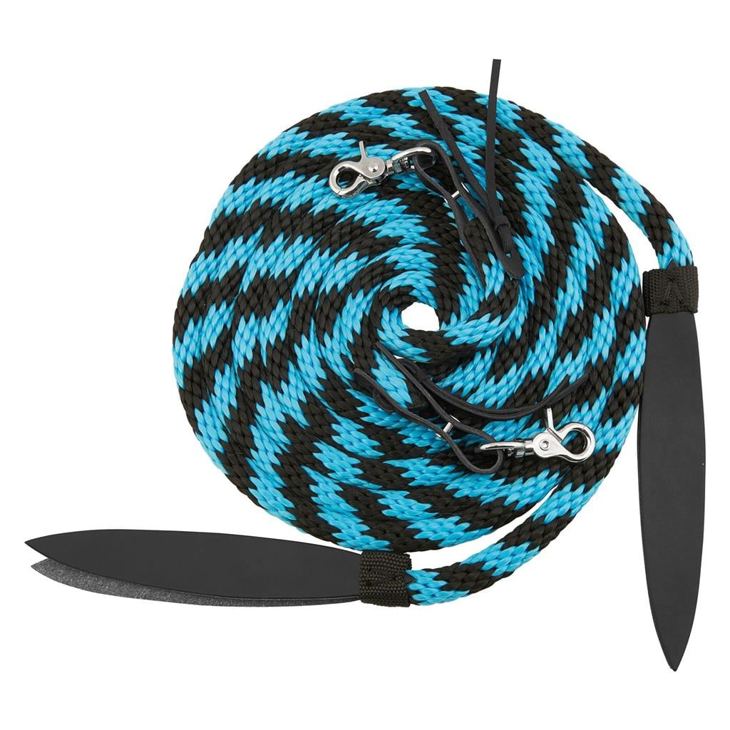 Kvalitní, provazové, dělené otěže L-pro West s karabinkami, zakončené kůží.