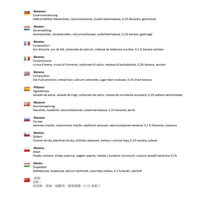 - cukrová třtina, ječmen, pšenice a sušené banány