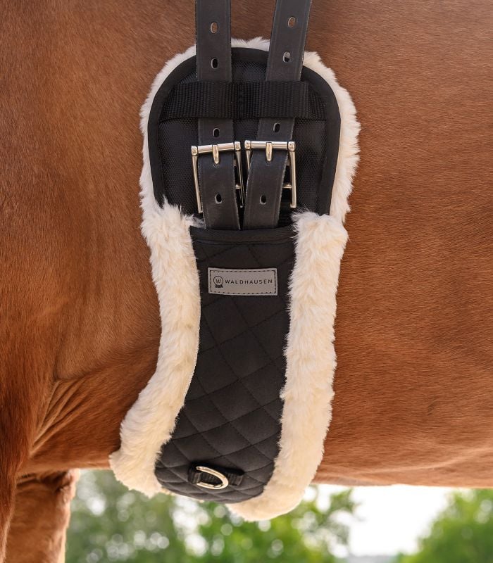 Krátký podbřišník, podšitý měkkým syntetickým beránkem, vhodný pro drezurní sedla. Beránek zabraňuje odírání a podráždění kůže. Střih optimalizuje rozložení tlaku a zúžení v oblasti loktů, umožňuje maximální volnost pohybu a zabraňuje posunutí sedla. Je vhodný tedy zejména pro koně s kulatějším břichem. Podbřišník je vybavený klasickým D-kroužkem a válečkovými přezkami z nerezové oceli. Bez dotahovacích gum.