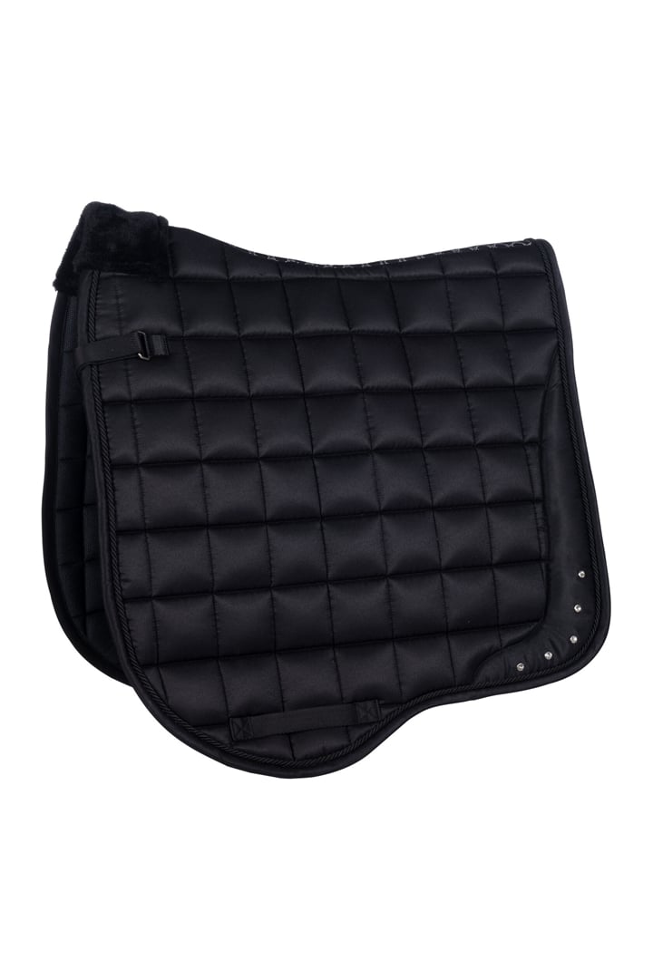 Podsedlová dečka, zdobená kamínky a umělým beránkem na kohoutku.
