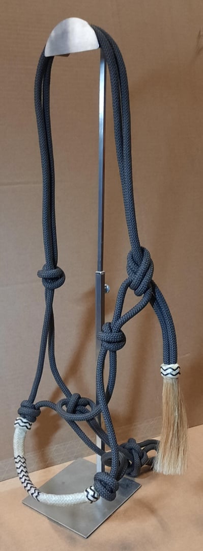 Kvalitní provazová ohlávka s opletem z přírodní surové kůže.