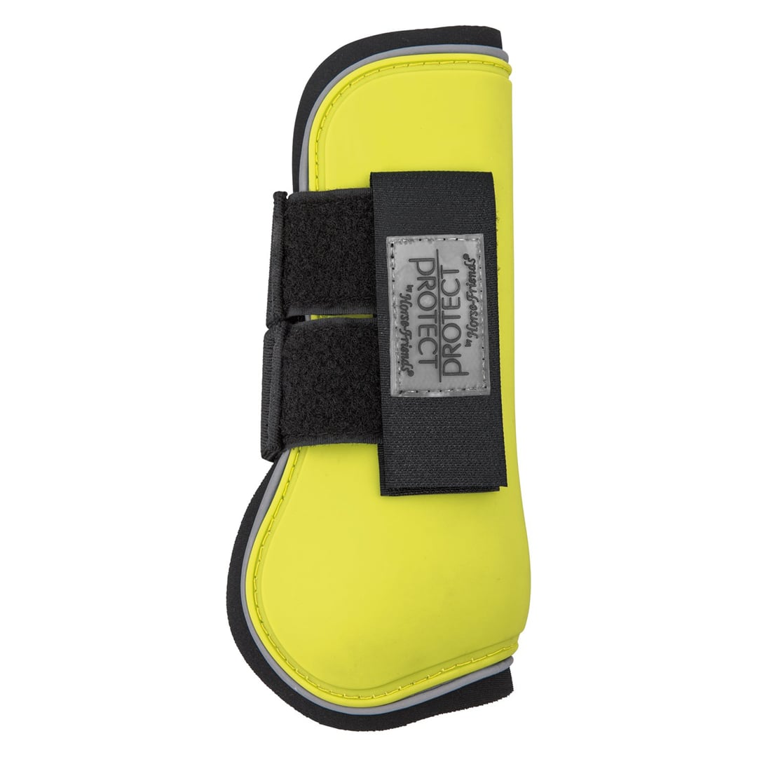 Reflexní kamaše PROTECT by Horse-Friends pro ochranu předních nohou. Neonově žluté kamaše jsou s měkkou výstelkou Hippopren® a reflexním lemováním pro dobrou viditelnost za špatného počasí a ve tmě. K upevnění slouží dvojitý suchý zip.