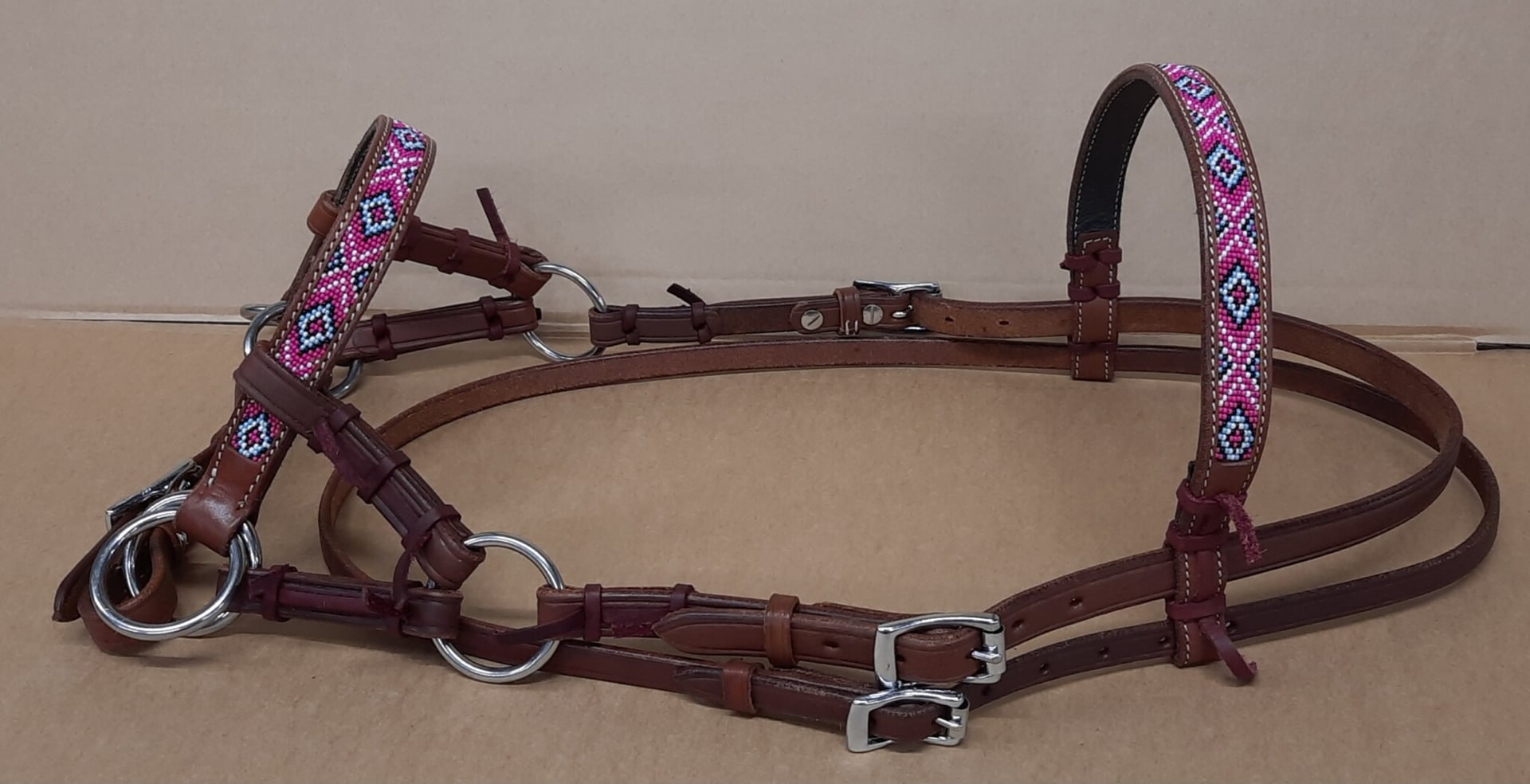 Luxusní westernový Sidepull Beads z té nejlepší kůže, zdobený hnědými a béžovými korálky.