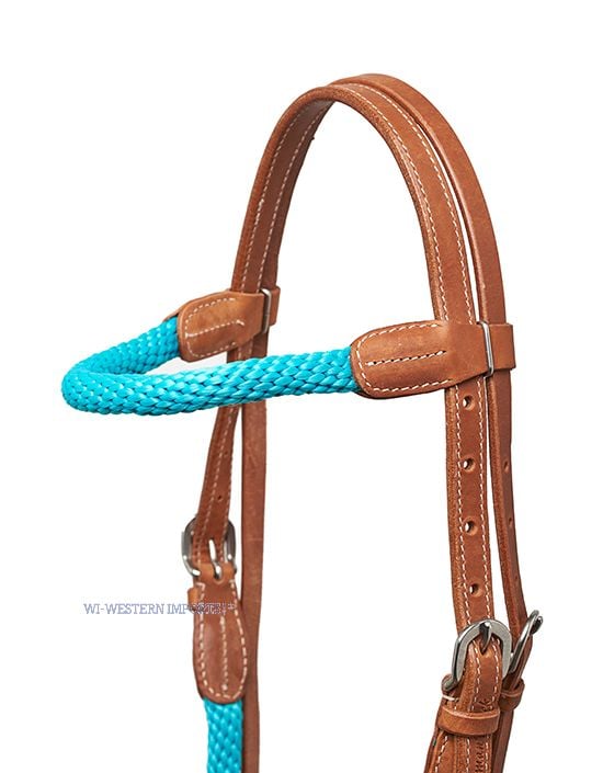 Westernová uzdečka z velmi kvalitní hovězí kůže, doplněna měkkým silným lanem.