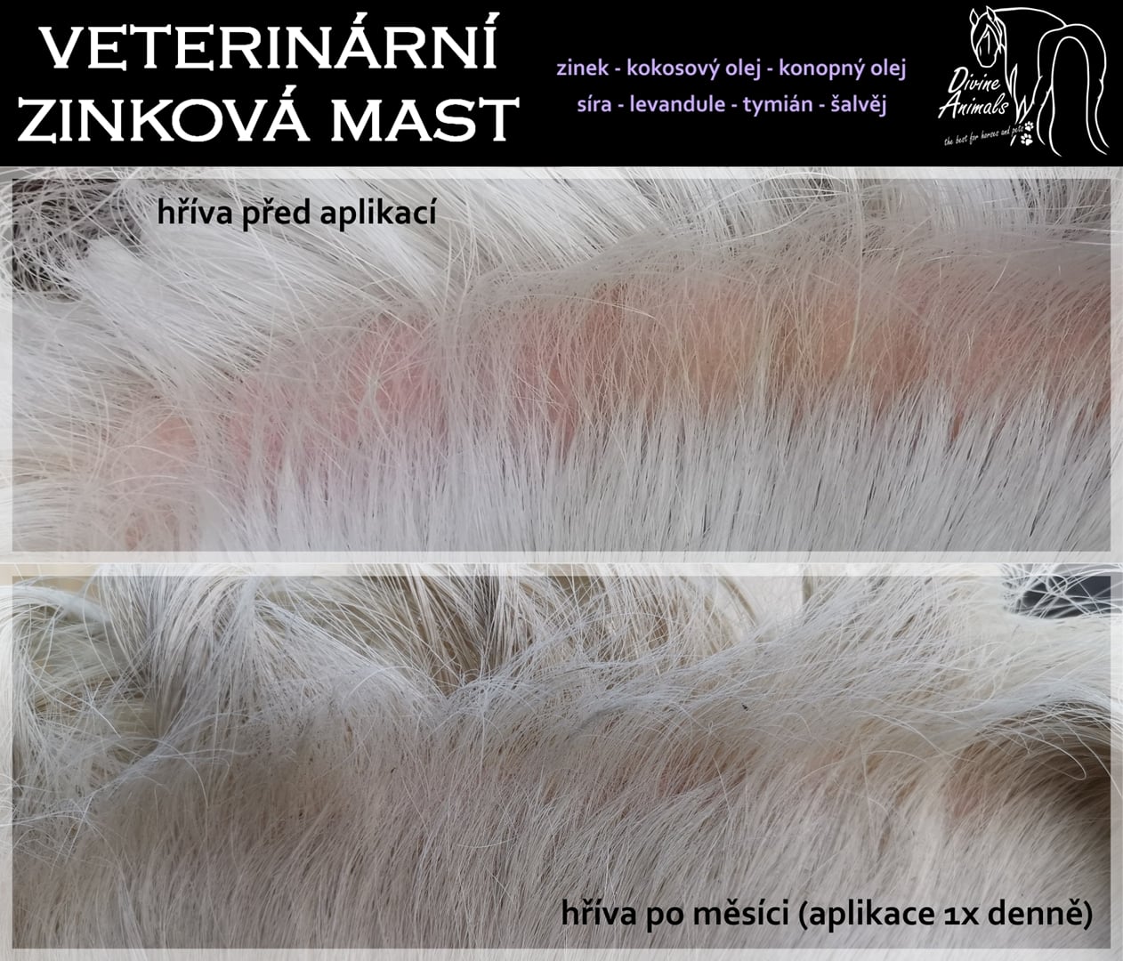 Vhodná pro koně a psy s kožními problémy (dermatitidou), na spáleniny od slunce a drobná poranění na pokožce. U koní zejména na podlomy a letní vyrážku.