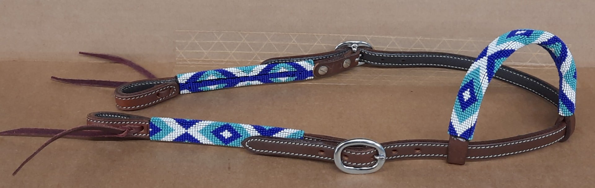 Westernová jednouška GVR s korálky tyrkys, blue, white