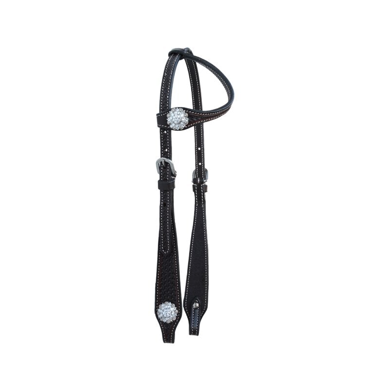 Velmi stylová jednouška zdobená ražbou. Kvalitní Concha jsou bohatě zdobené kamínky ! Uzdečka s jedním uchem je velmi ušlechtilá a na koni vypadá velmi pěkně.
