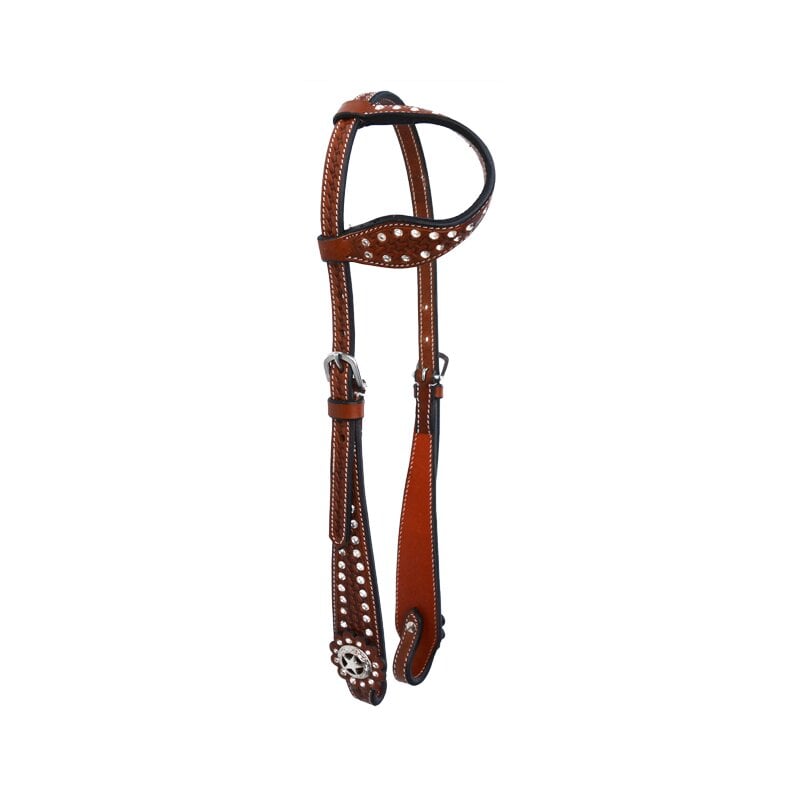 Stylová westernová uzdečka s jedním uchem s elegantním kamínkovým zdobením a hvězdicovou lasturkou .