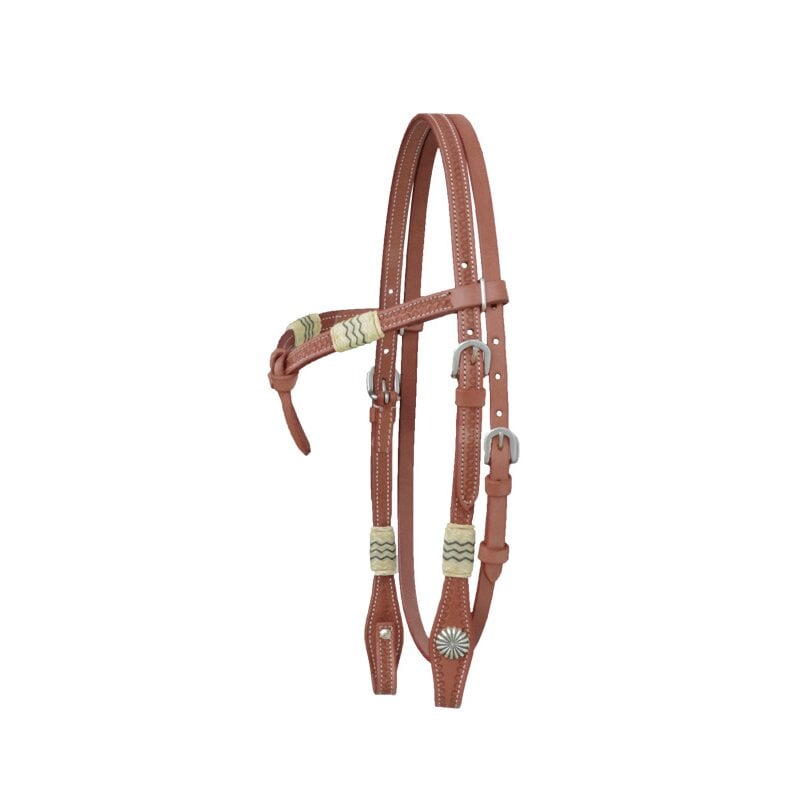 Nádherná westernová uzdečka se zdobenou čelenkou a velmi propracovaným opletením ze surové kůže i na lícnici! Tato uzdečka je naprostý skvost! Propracované opletení ze surové kůže a nádherné conchos dělají z westernové uzdy absolutní poutač! Westernová uzdečka je super elegantní pro vašeho westernového koně!