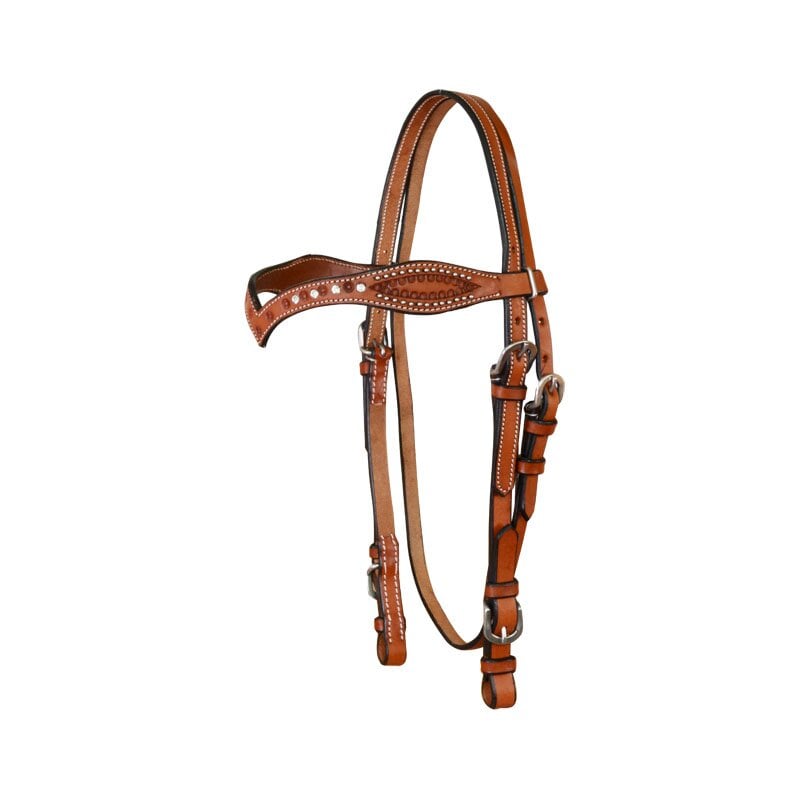 Westernová uzdečka s čelenkou do V a praktickým rychloupínáním. Uzdečka má rychloupínací uzávěr s přezkami, takže udidlo lze rychle a snadno vyměnit a připevnit.Praktická uzdečka je dostupná ve třech různých barvách a je nastavitelná. Čelenka je zdobena elegantními kamínky.