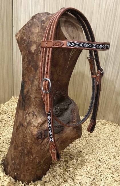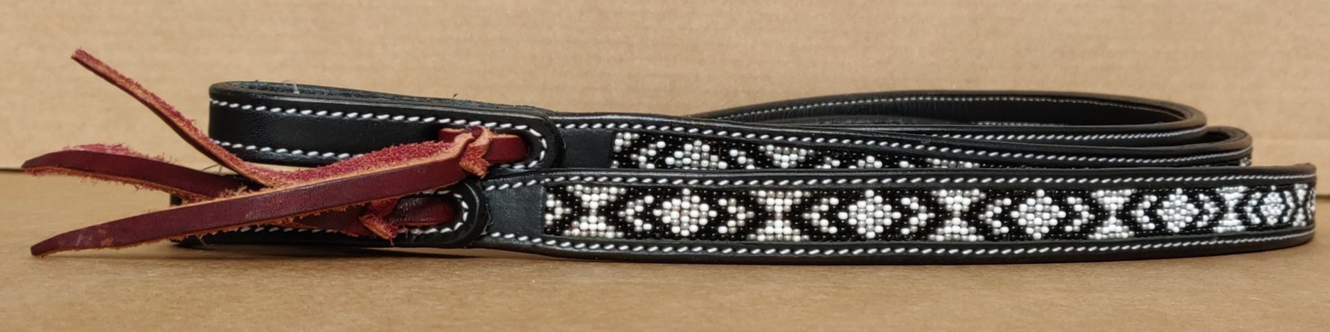 Nádherné, kvalitní otěže z té nejlepší kůže, zdobené barevnými korálky.